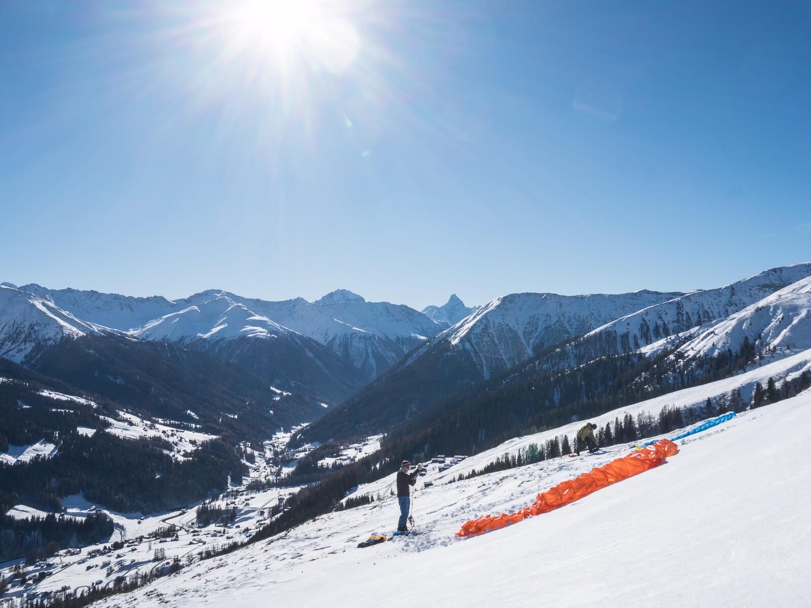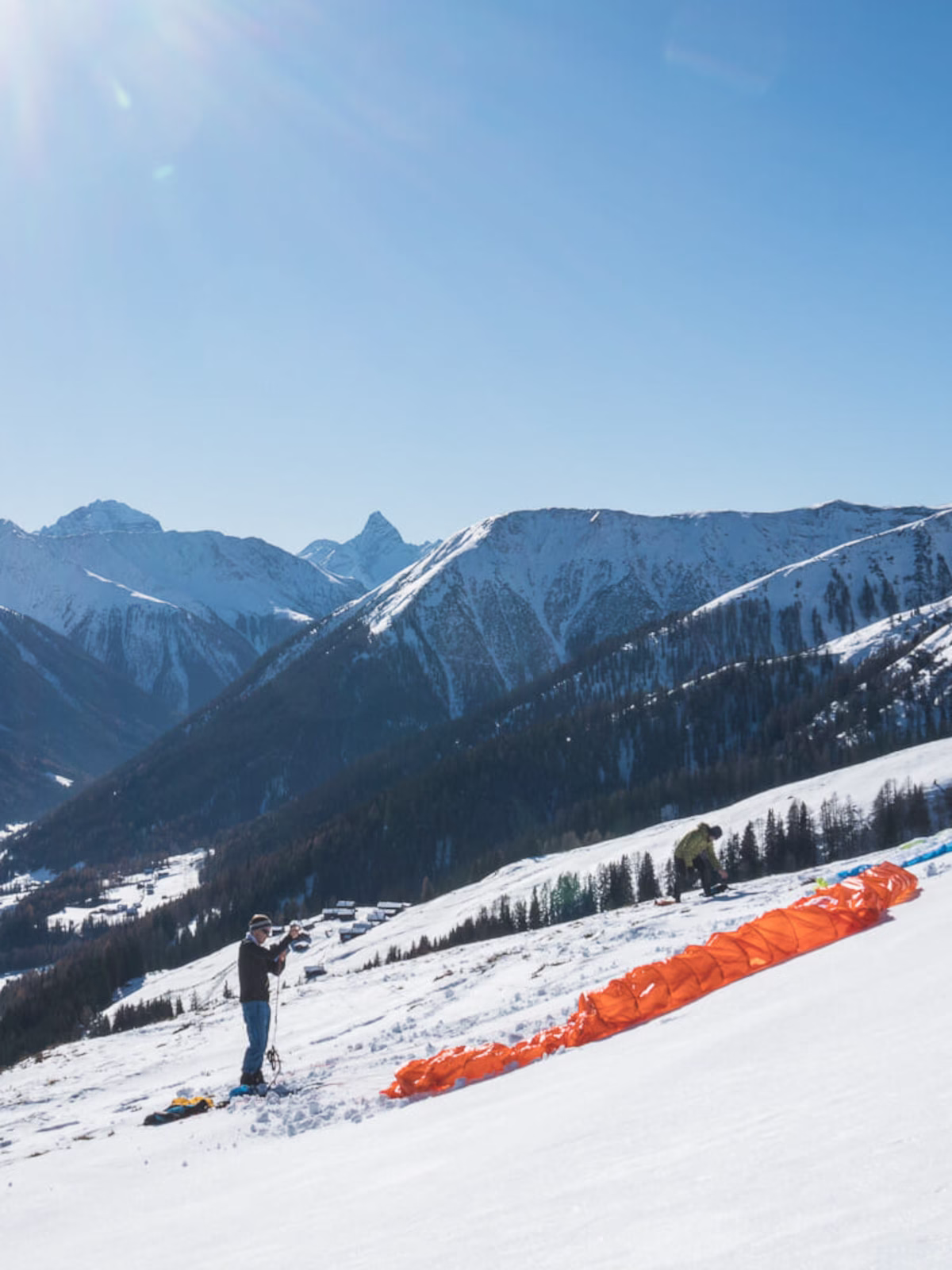 Falls du selber Gleitschirmpilot bist, ist es möglich, dass du selber runter fliegst. Unser Bergführer wird dir auf jeden Fall beim Start behilflich sein. Es ist deine persönliche Entscheidung ob du starten möchtest oder nicht. Der Start und Flug geht auf dein eigenes Risiko.
