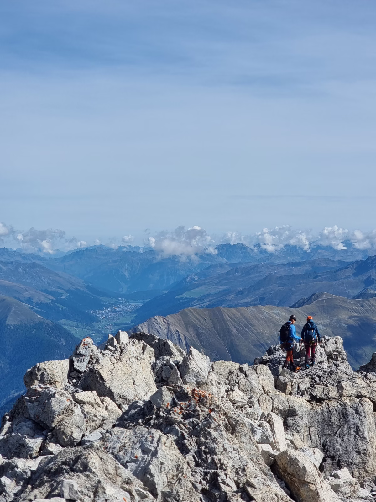 Frühmorgens fahren wir mit dem Auto via Filisur hoch zur Alp Spadlatscha. 200 Höhenmeter vor der Chamona d’Ela parkieren wir das Auto und starten zu Fuss an der Hütte vorbei zum Einstieg der Route. Nach dem Zustieg folgt zuerst Gehgelände und dann im oberen Teil leichte Kletterei auf den Gipfel des Bündner Matterhorns.